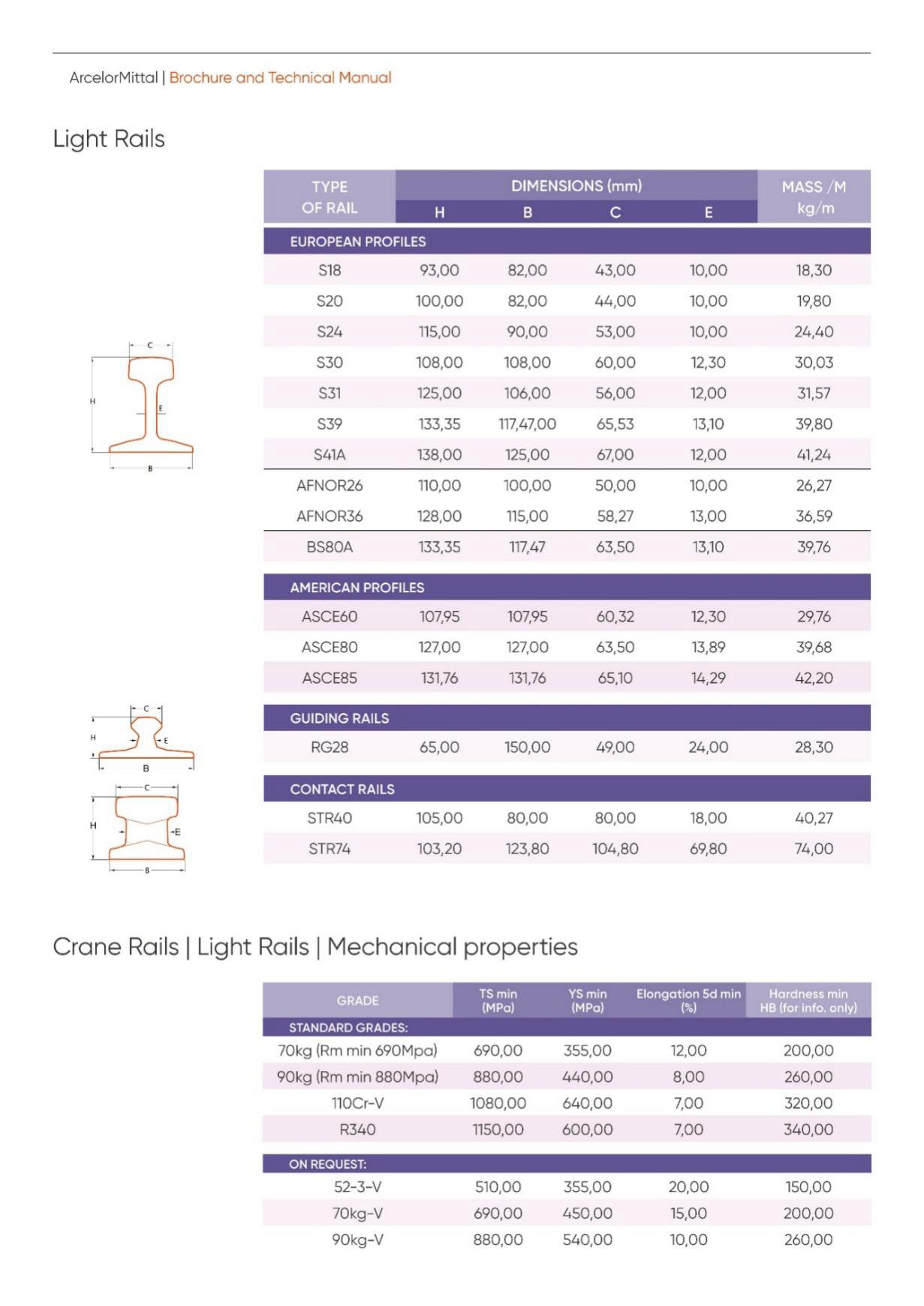 Arcelormittal 可根据欧标和美国标准轧制不同种类的轻轨,向全球客户提供最优质的轻轨。